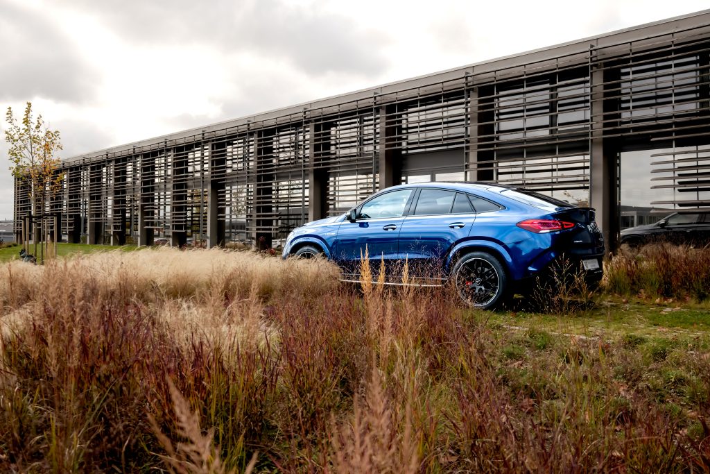 AMG-logoet forener natur og teknik – et æbletræ fra Affalterbach ved siden af en ventil og en fjeder. Den samme balance findes i GLE 63 S Coupé, hvor SUV’ens format møder sportsvognens sjæl. Den håndbyggede 4,0-liters V8 biturbo leverer 612 hk, skyder fra 0 til 100 km/t på 3,9 sekunder og rammer en elektronisk begrænset topfart på 250 km/t. Det er rå kraft i forfinet form – præcis som AMG altid har tænkt det.